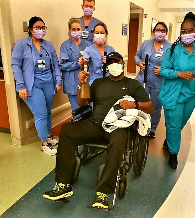 While in the hospital, Sylvester connected with a 21-year-old who was in a room near him. This patient had not been out of his room much while he was in the hospital. Sylvester invited him to take walks together, knowing how positive a change of scenery and physical activity can be physically and mentally uplifting. The two walked laps around the unit in deep conversation, kicking off a friendship.